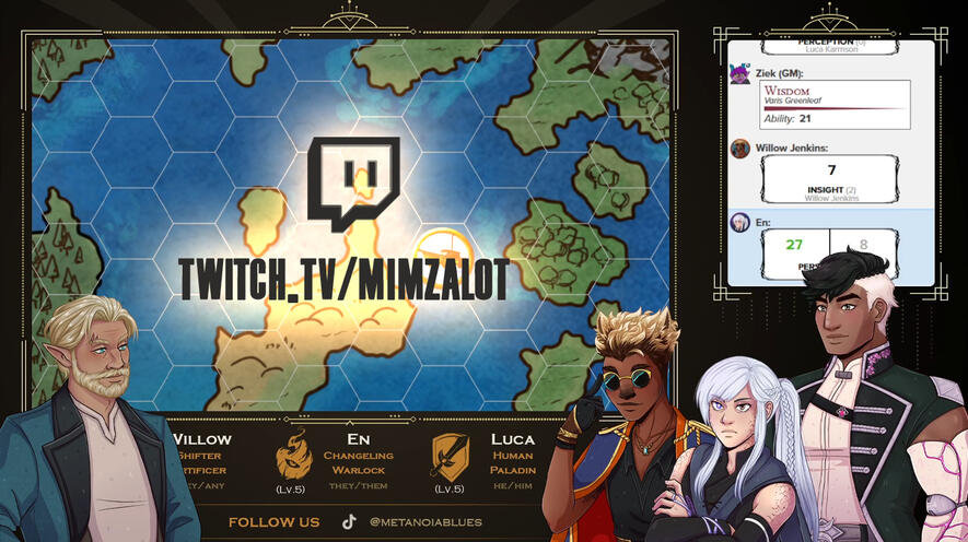 In the post-war world of Eberron, three troubled misfits band together to embark on a perilous journey across Khorvaire. The path ahead is rife with dangerous cults, lost memories, and imperiled homelands. Will they manage to find the answers they seek, or will they find only dead ends...Metanoia Blues: Resonance is an Actual Play D&D series hosted on Twitch and Youtube.